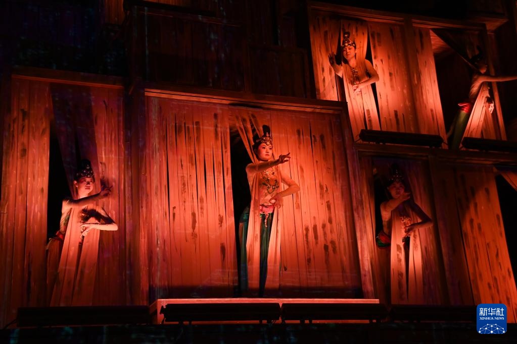 10月15日,演员在大型室内情景体验剧《又见敦煌》中表演。新华社记者 范培珅 摄
